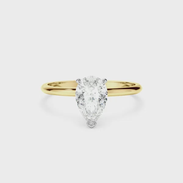 This timeless custom-made engagement ring, made with your choice of diamond centre stone, features a pear cut diamond 3-claw solitaire setting. Exuding fluidity in its line work, and boasting an elegant silhouette, as with all the pieces in our Bespoke Collection, this piece is made especially for you.