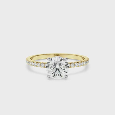 Round Brilliant Cut Diamond Solitaire Engagement Ring With Pave Band