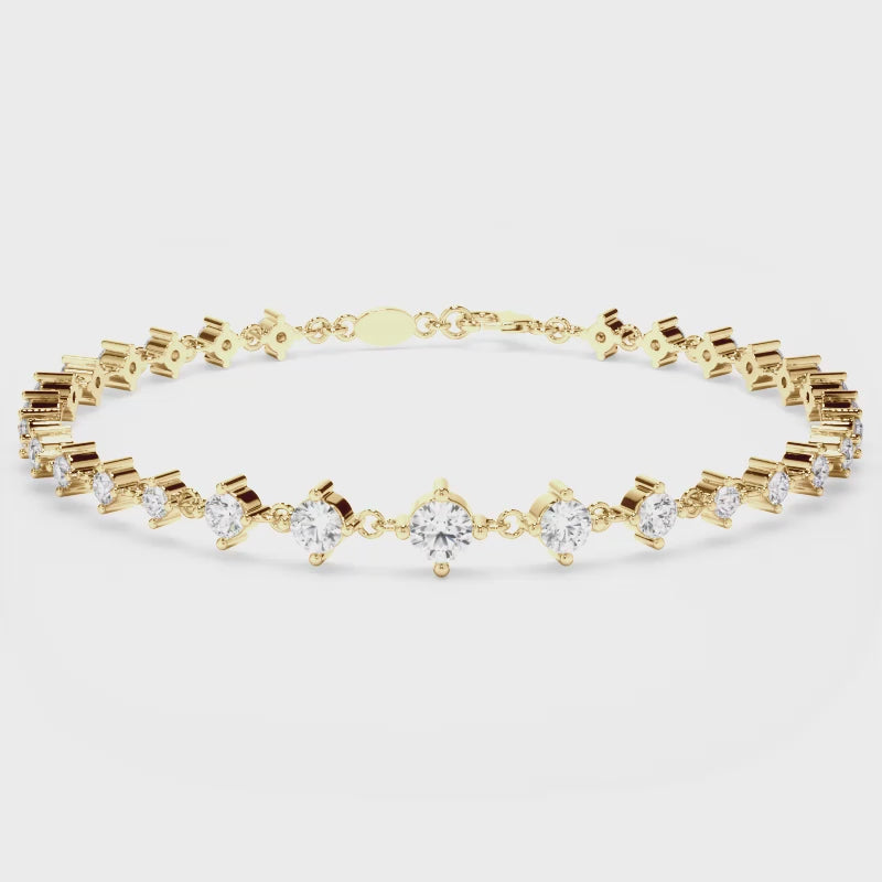 This eye-catching graduating round brilliant cut laboratory grown diamond tennis bracelet is made especially for you.
